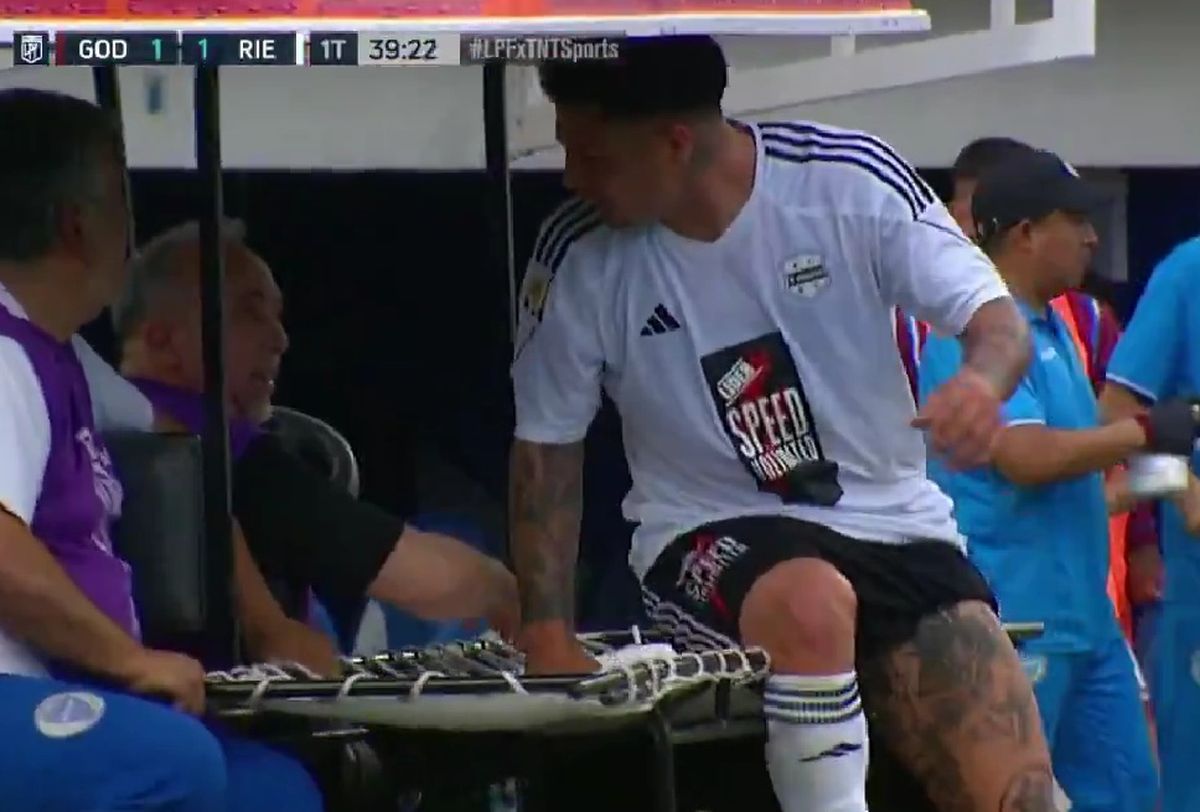 Sobre la recta final de la primera etapa, ya con el marcador 1-1 (Riestra convirtió a los 19 minutos y Godoy Cruz lo empató a los 22), Facundo Tello le pidió al conductor y a su compañero que abandonen el campo de juego.