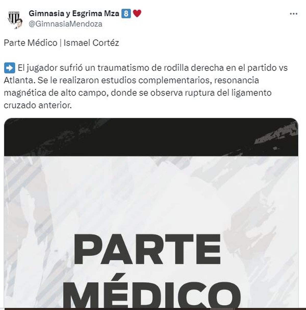 Gimnasia y Esgrima sufrió una dura noticia de cara a la continuidad del torneo de la Primera Nacional con la lesión del defensor Ismael Cortez. Se comprobó que el defensor padece una rotura del ligamento cruzado anterior de la rodilla derecha, deberá ser intervenido quirúrgicamente y estará varios meses fuera de las canchas.