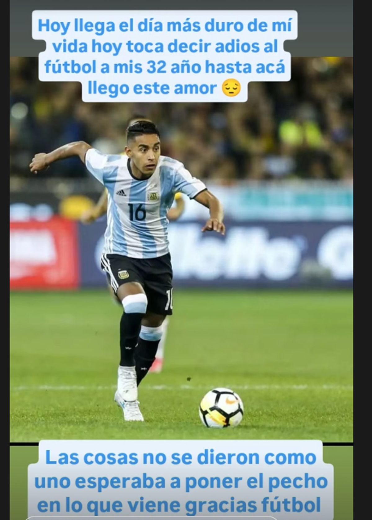 Un ex integrante de la Selección argentina sorprendió al anunciar a través de las redes sociales su decisión de retirarse del fútbol con solo 32 años.