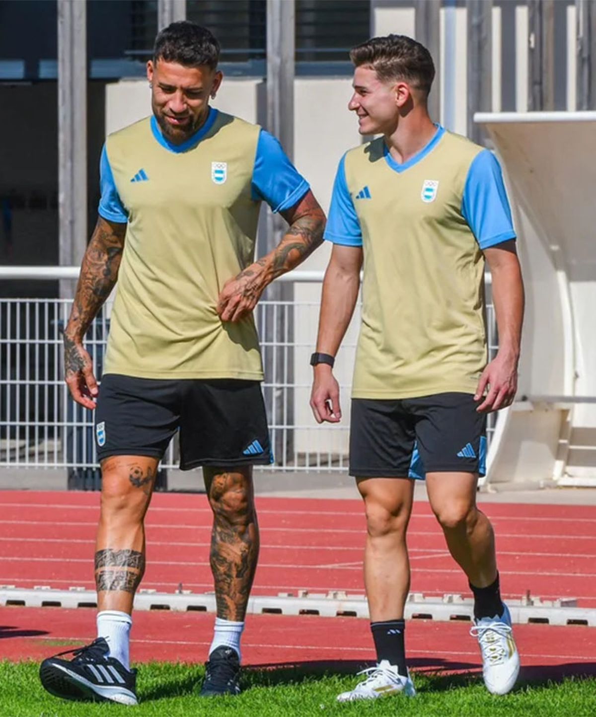 Julián Álvarez y Nicolás Otamendi son puro optimismo tras la victoria 2-0 contra Ucrania. Ellos son dos de los tres jugadores mayores de la Selección argentina Sub 23 en los Juegos Olímpicos París 2024.
