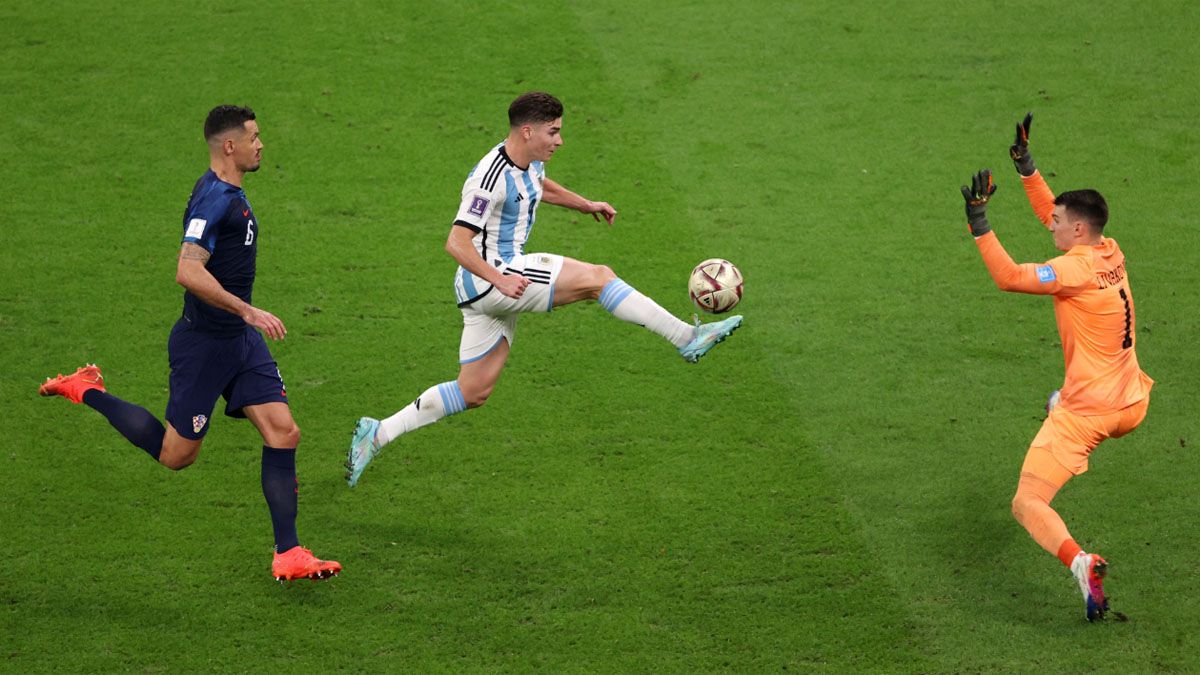 Julián Álvarez ratificó que es una de las figuras de la Selección argentina en el Mundial Qatar 2022 y además de forzar el penal del gol de Messi fue el autor del segundo tanto en la semifinal ante Croacia.