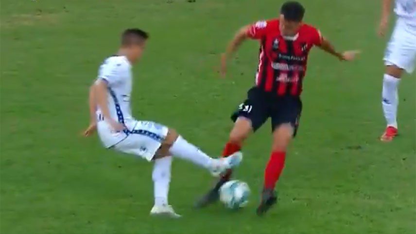 El mediocampista de Godoy Cruz, Kevin Gutiérrez, protagonizó una linda jugada promediando la primera etapa, en el partido entre el Tomba y Patronato, en Paraná, por la 14ª fecha de la Superliga.