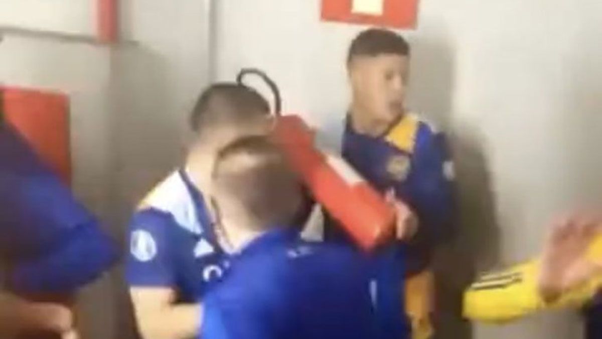 Una vez terminado el encuentro, dirigentes, miembros del cuerpo técnico y jugadores boquenses se trenzaron con la policía brasileña en la puerta del vestuario visitante.