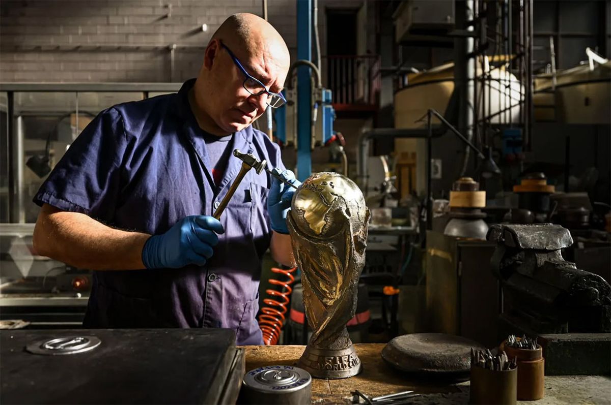 Este procedimiento ya es una costumbre luego de cada Copa del Mundo y lleva un cuidadoso trabajo artesanal que realizan los empleados más calificados y acostumbrados a trabajar con trofeos de la FIFA, UEFA y distintas federaciones deportivas.