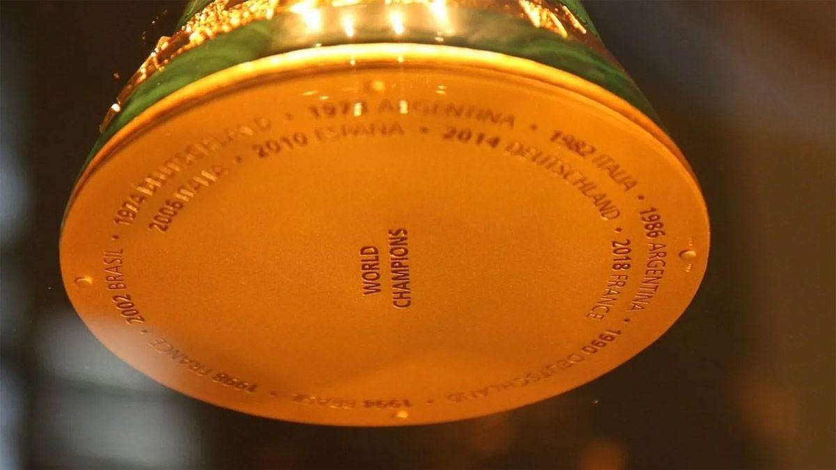 La orfebrería se encargará de grabar en la base del trofeo la frase "Argentina 2022" que perdurará en la historia, tal como ocurrió con las dos primeras consagraciones mundiales de la Selección nacional en los mundiales 1978 y 1986.