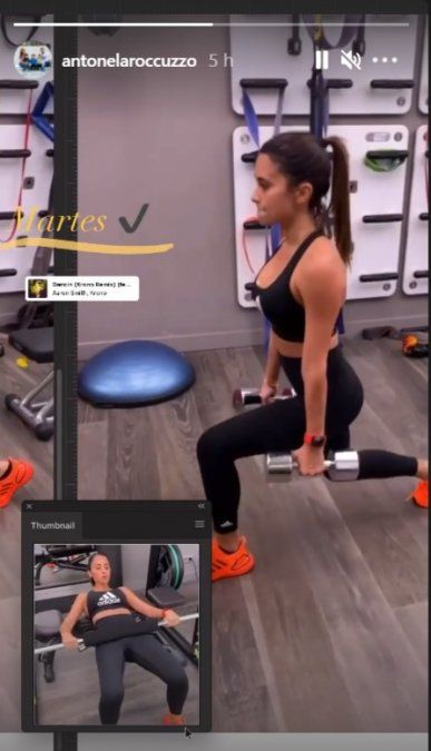 Anto publicó una historia en Instagram, donde se los puede ver a la pareja entrenando en el gimnasio. Messi llevaba puesto el pantalón de la Albiceleste, algo que llamó la atención de sus seguidores.4