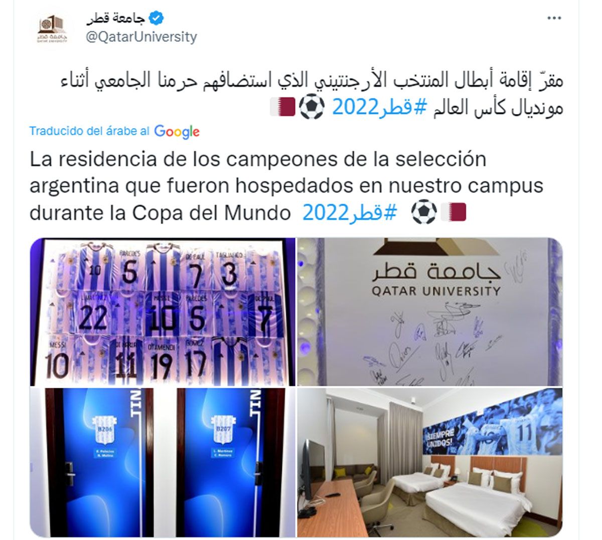 La Universidad de Qatar publicó una serie de fotos de la concentración "albiceleste" y en el último posteo anunció que la habitación B201 que utilizó el capitán argentino se convertirá en un museo.