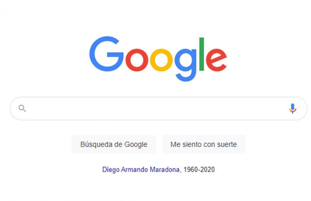Tal es así que Google añadió, en la página de inicio, la opción de buscar la biografía de "Diego Armando Maradona 1960-2020" con un link directo hacia la página de Diego en Wikipedia, noticias, mejores tuits y demás.