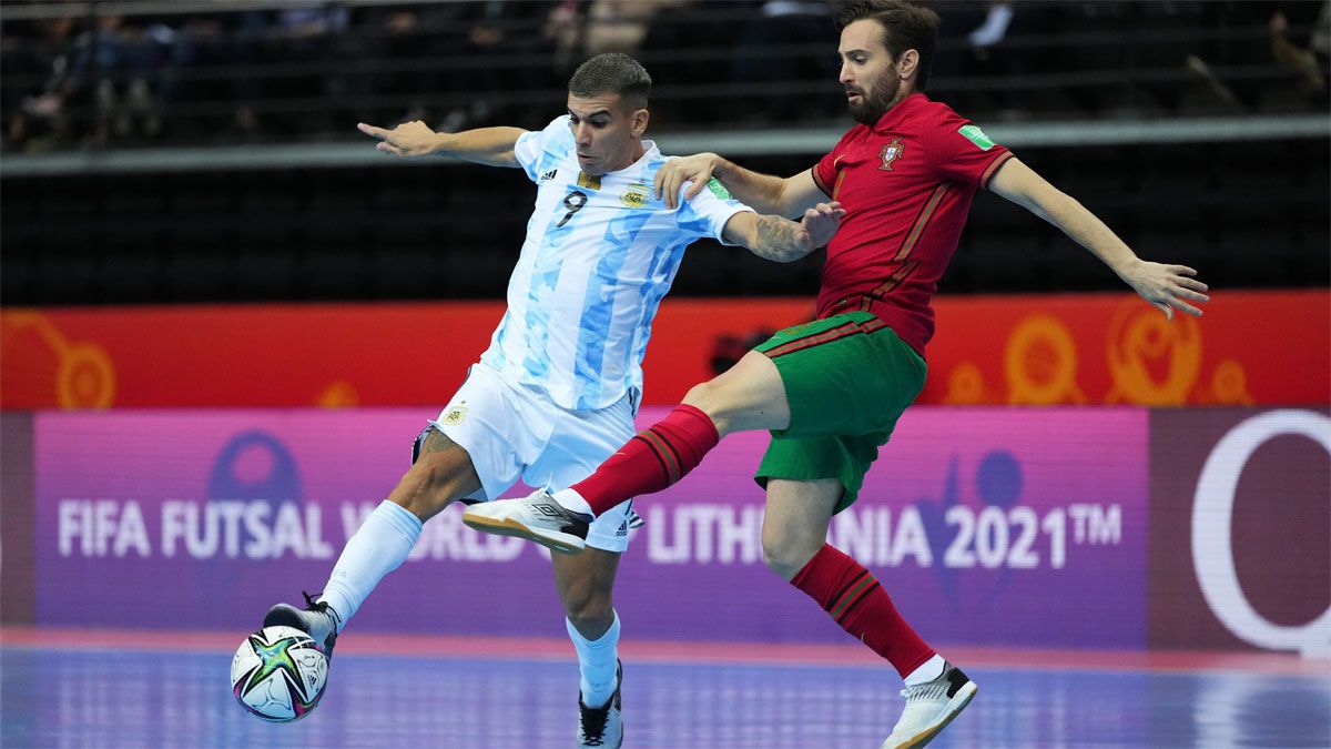 (Editado por Miguel Guayama) El argentino Cristian Borruto vio la tarjeta roja, luego de que le pegara una piña al portugués experimentado Ricardinho, en la final del Mundial de Futsal de Lituania 2021 entre Argentina y Portugal.