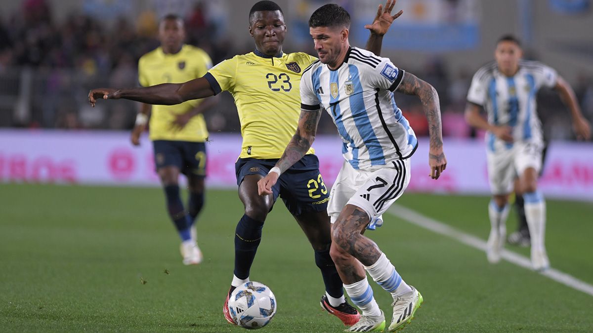Un tiro de Rodrigo De Paul sobre el final del primer tiempo fue rechazado sobre la línea por los ecuatorianos.