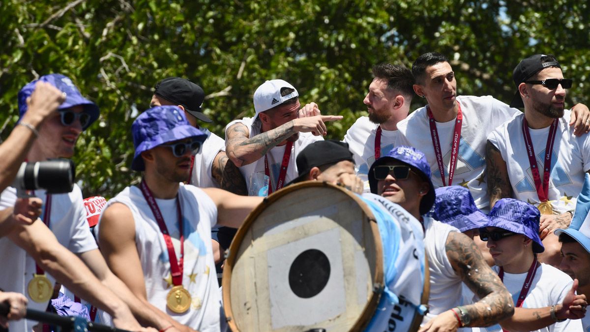 La histórica celebración de los jugadores de la Selección argentina, a bordo de un micro descapotable, partió desde el predio de la AFA en Ezeiza, con destino final en el Obelisco.
