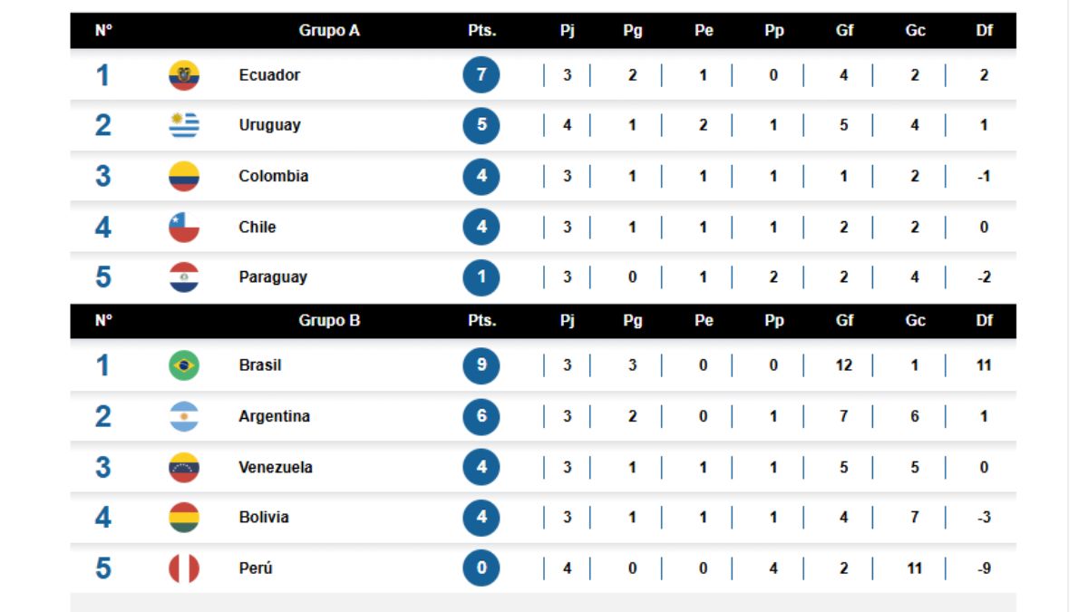 Brasil pudo redondear un 3 a 0 favorable para posicionarse en solitario en lo más alto del Grupo B (9 unidades), gracias a los goles de Riquelme Da Silva (2) y Eduardo Conceicao. De esta forma Argentina quedó como escolta con 6 puntos, por los triunfos ante Perú y Venezuela.