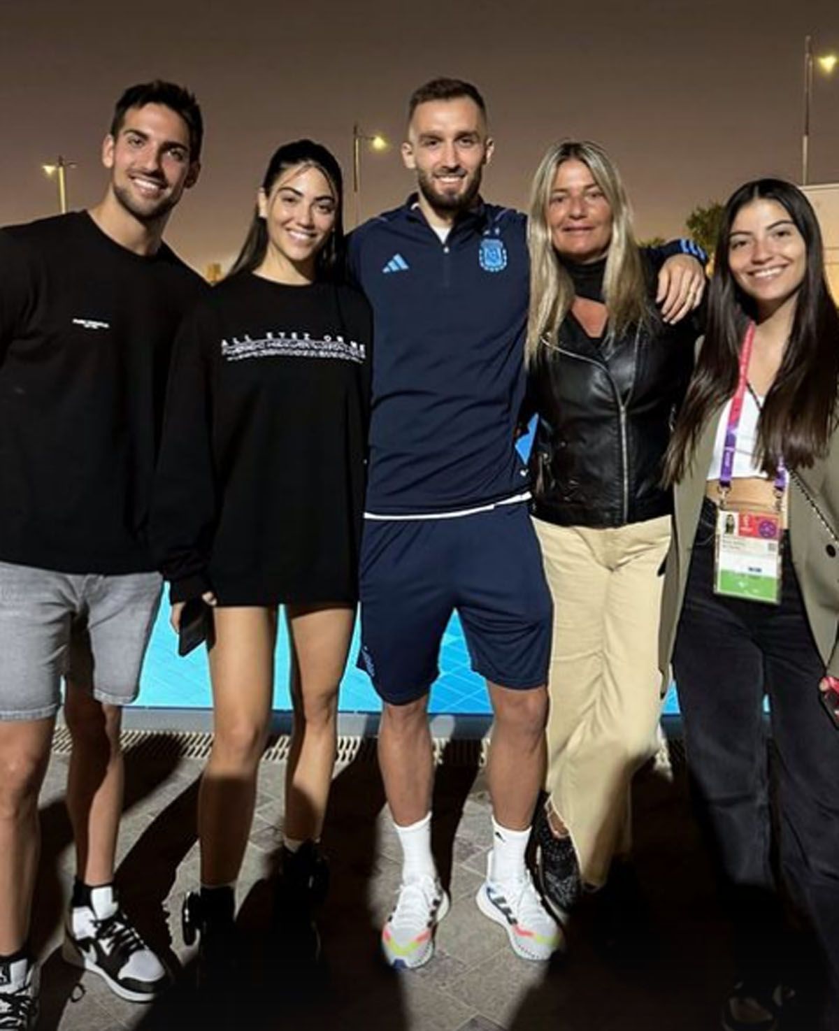 Otro que recibió a familiares y a su novia, Agustina Bascerano, fue el defensor Germán Pezzella, quien pudo debutar en el Mundial Qatar 2022 al ingresar desde el banco frente a Polonia.