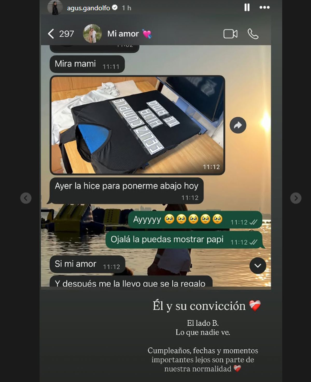 "Él y su convicción. El Lado B. Lo que nadie ve. Cumpleaños, fechas y momentos importantes lejos son parte de nuestra normalidad", indicó.