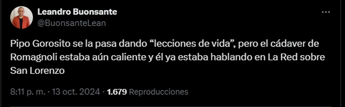 “Me da pudor estar ofreciéndome a través de un medio por respeto a Pipi que lo quiero mucho. Siempre manifesté mis ganas de volver a San Lorenzo, pero me incomoda el momento en el cual está la institución. No quiero causar un problema. Quiero que el club elija lo mejor y no quiero molestar” (Pipo Gorosito).