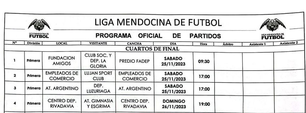 Liga Mendocina: así se jugarán los cuartos de final del Clausura