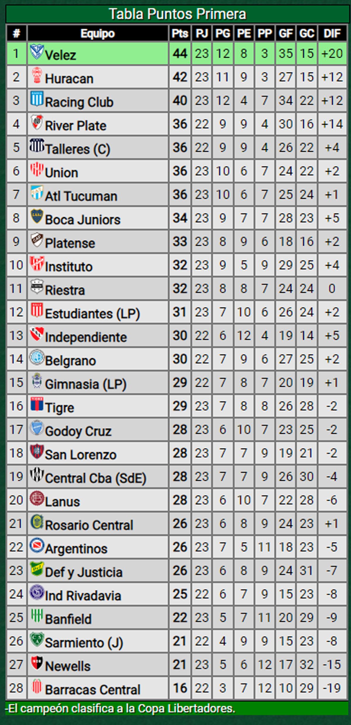 Con este resultado, los dirigidos por Gustavo Quinteros se mantienen como líderes del certamen con 44 puntos, dos más que su escolta Huracán (perdió el lunes con Atlético Tucumán) y el domingo desde las 19.15, visitará a Godoy Cruz en el Malvinas por la fecha 24.