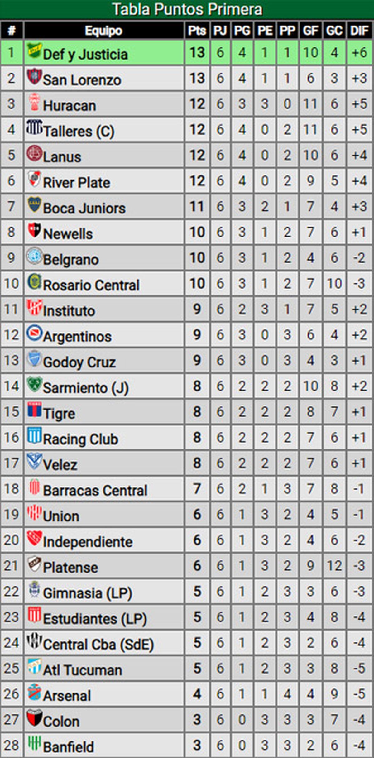 La 6ª fecha de la Liga Profesional llegó a su fin, en una última jornada de lunes que tuvo a Godoy Cruz escalando en la tabla de posiciones, gracias al triunfo que logró frente a Racing.