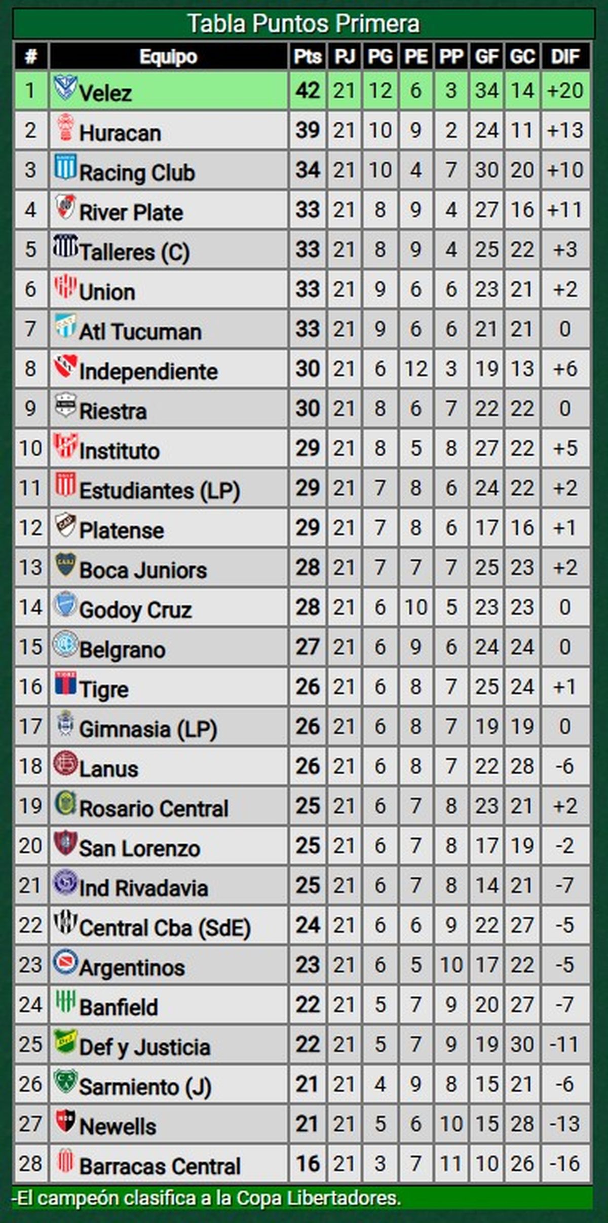 Con este sufrido triunfo, el equipo de Liniers vuelve a ser el único puntero con 42 unidades, y se ilusiona con la obtención de un nuevo título, a solo 6 fechas del final del campeonato.