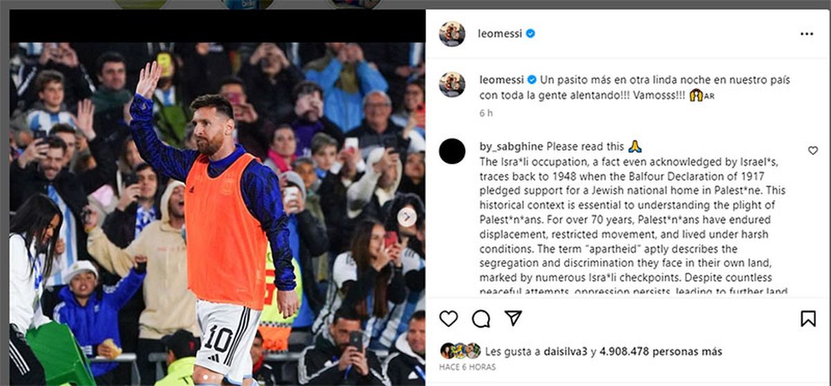 En poco tiempo, el posteo del astro rosarino llegó a los casi 3 millones de 'likes' y miles de comentarios en apoyo y elogio total para su figura.