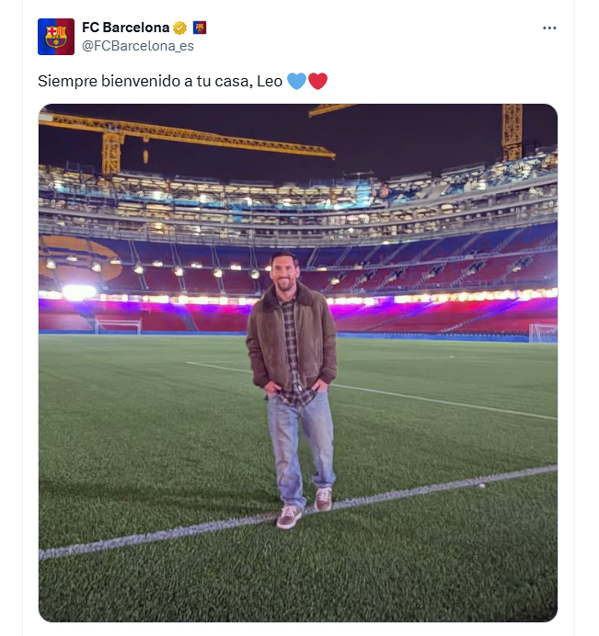 El posteo se viralizó a nivel mundial y horas después la cuenta oficial del Barcelona recogió el guante e indicó: "Siempre bienvenido a tu casa, Leo".