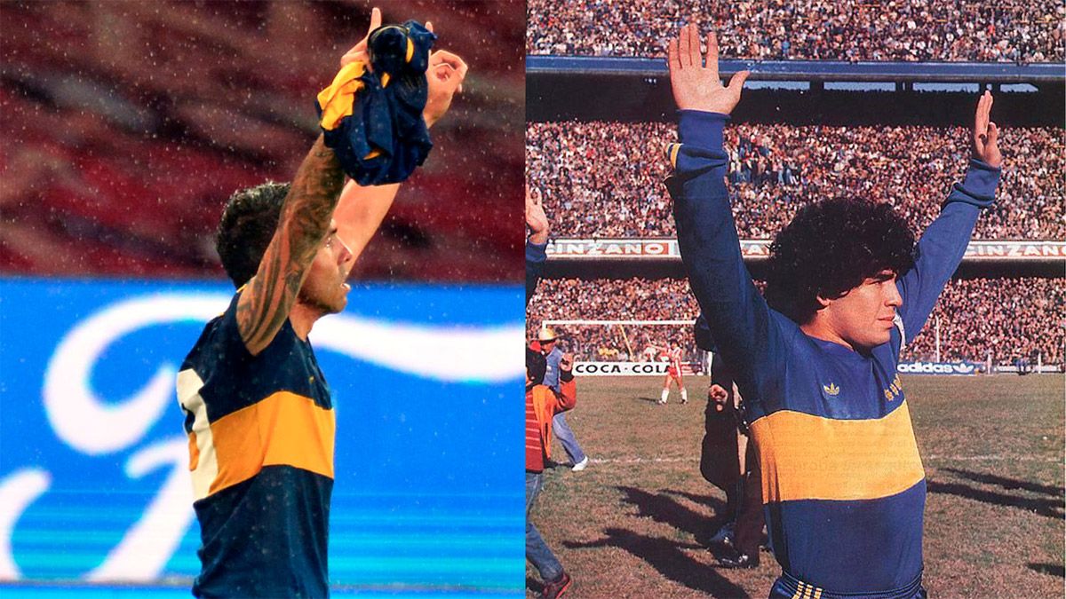 El delantero Carlos Tevez homenajeó a Diego Maradona, fallecido a los 60 años, mostrando un modelo de camiseta de Boca que el propio "diez" lució en el Metropolitano de 1981 que ganó con el "xeneize".