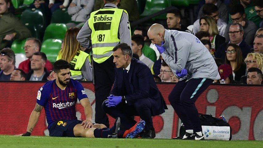 Luis Suárez, autor de un gol y una asistencia en la goleada del Barça ante el Betis (1-4), se lesionó en el tobillo derecho en el minuto 87. Fue una acción fortuita sin mediar acción con un rival.