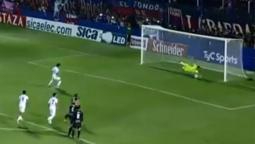El arquero mensana se arrojó hacia su izquierda adivinando la intención de Morales, quien remató "a colocar" pero sin la potencia necesaria para marcar el 2 a 0.
