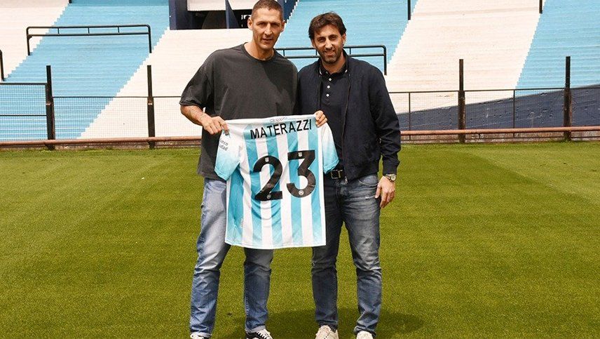 Materazzi, de 46 años, recibió una casaca de Racing como regalo con el número "23" en la espalda y fue saludado por el presidente, Víctor Blanco, y el entrenador Eduardo Coudet, informó la página oficial del último campeón del fútbol argentino.