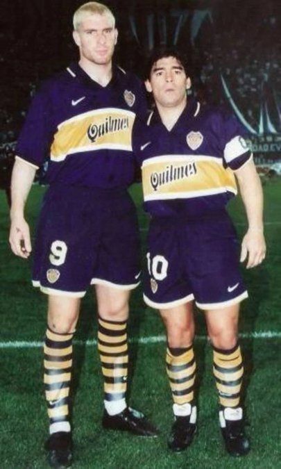 Unos meses después, Maradona le pidió a Mauricio Macri, el presidente de Boca, que me comprara. Era 1997 y ahí tuve el honor de llegar a Boca. El equipo era increíble: estaban Diego, Claudio Caniggia, Diego Latorre, Navarro Montoya, Néstor Fabbri, los mellizos Barros Schelotto… pero el club no estaba pasando un buen momento a la hora de ganar títulos. Así que los hinchas tenían motivos para no estar contentos. Y sin embargo, con Diego ahí, todo estaba en calma. Su presencia de algún modo tapaba todo.