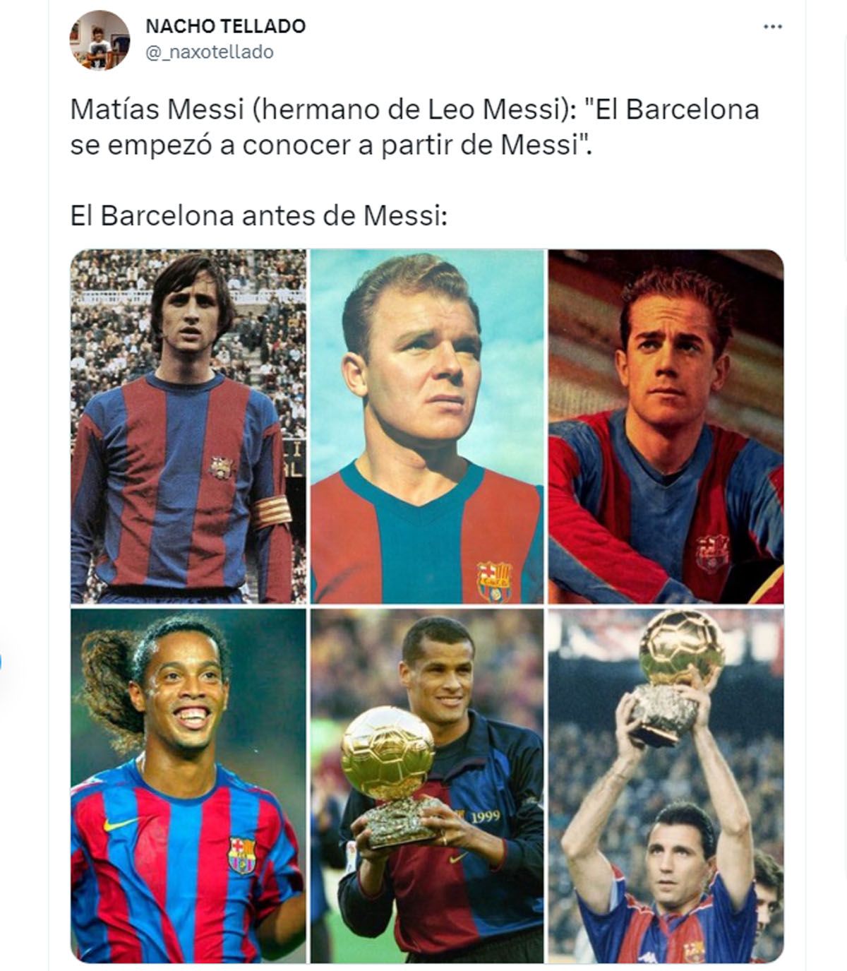 "No sé qué opinan ustedes, pero para mí lo conocieron por Messi y antes era conocido sólo Real Madrid", afirmó.