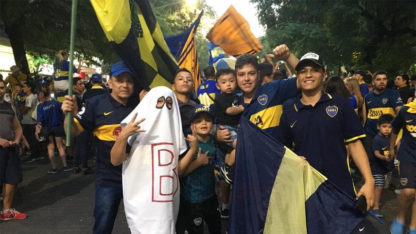 Pasadas las 19.30 comenzaron a llegar muchísimos hinchas del Xeneize al centro de la capital y se ubicaron sobre calle Garibaldi hasta Primitivo de la Reta, sin cortar la importante Avenida San Martín.