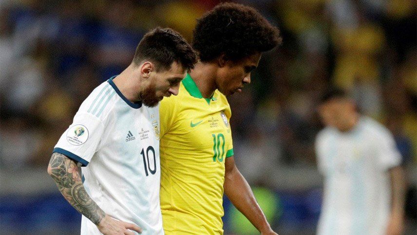 "Había VAR, y si no lo utilizaron fue porque los penales que dijo Messi no existieron. El árbitro dirigió normal, aunque es cierto que dejó pegar mucho. Sobre todo a la Argentina, que cometió muchas faltas. A mi me tiraron fuerte y me voy a tener que recuperar para la final”, comentó Willian, quien finalmente se perderá el encuentro ante Perú del próximo domingo por un desgarro en el muslo derecho.
