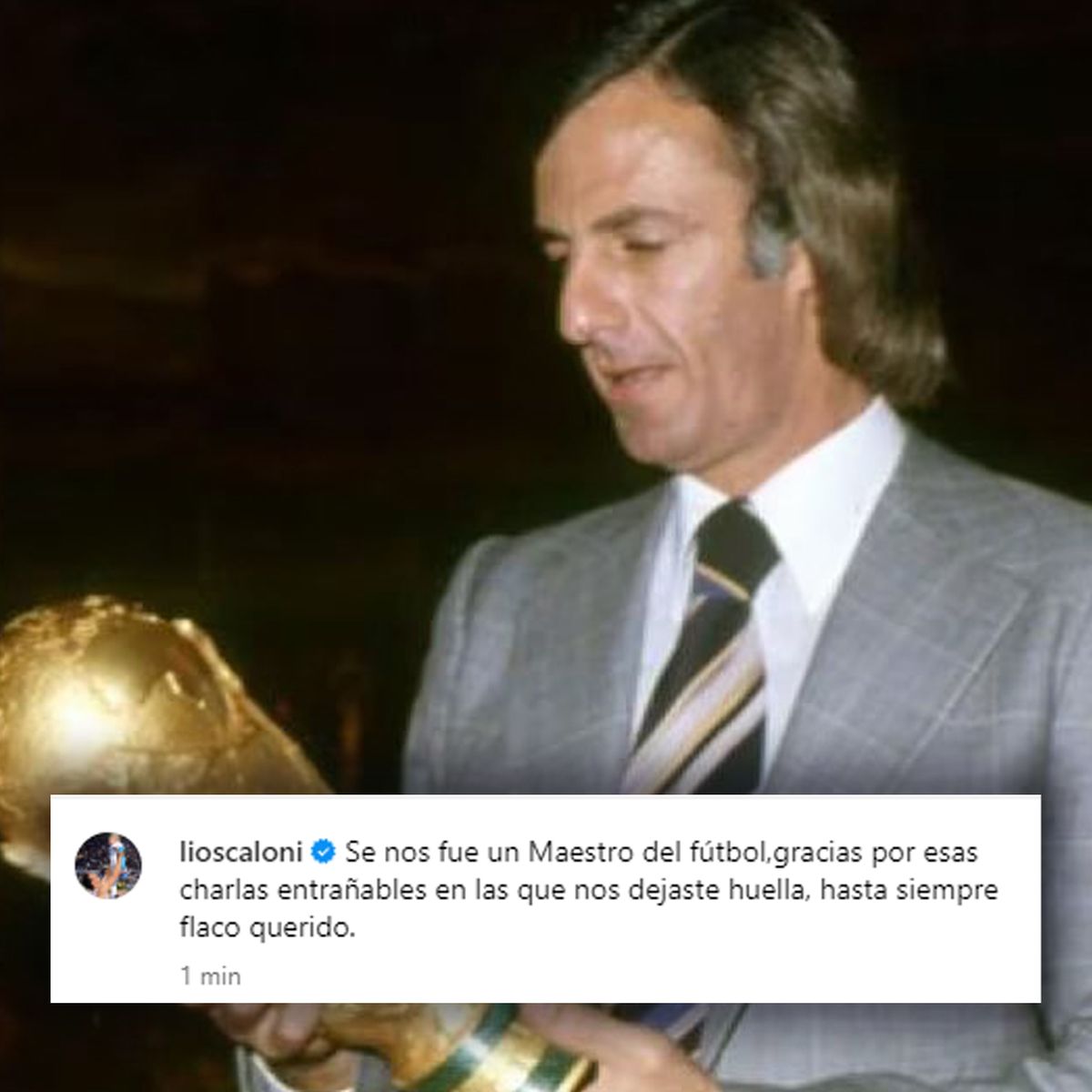 "Se nos fue un maestro del fútbol. Gracias por esas charlas entrañables en las que nos dejaste huella. Hasta siempre, Flaco querido", escribió Scaloni en su cuenta oficial de la red social Instagram.