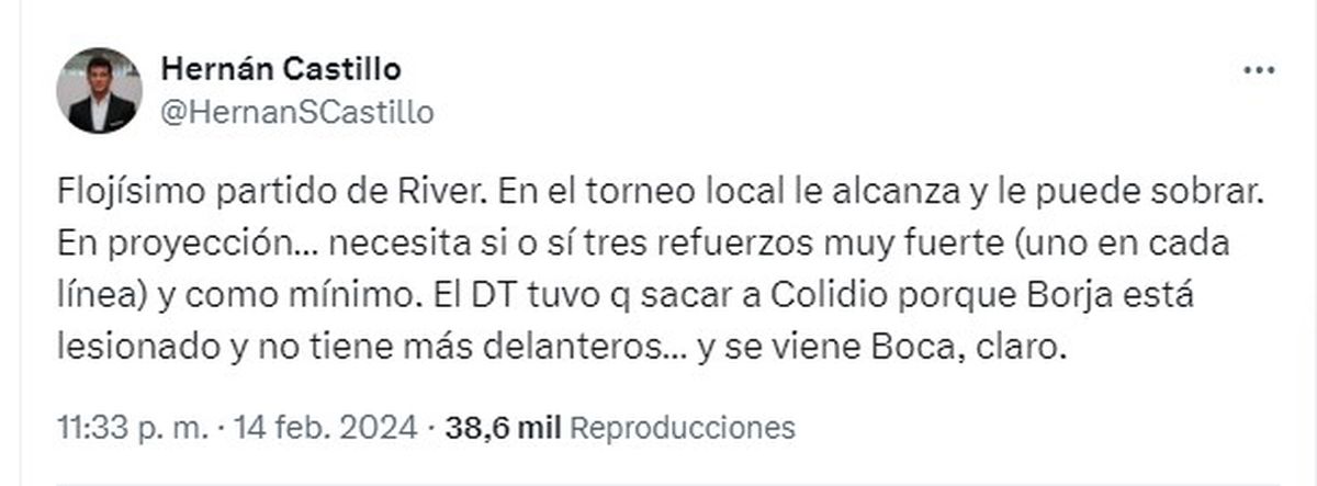►Te puede interesar: River tuvo su Batalla de Tucumán con Barco, Borja y Demichelis