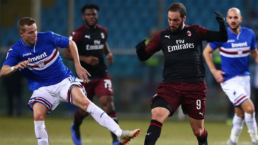 Milan, con la presencia de Gonzalo Higuaín, derrotó este sábado a Sampdoria, por 2 a 0, en tiempo suplementario, y clasificó a los cuartos de final de la Copa Italia.