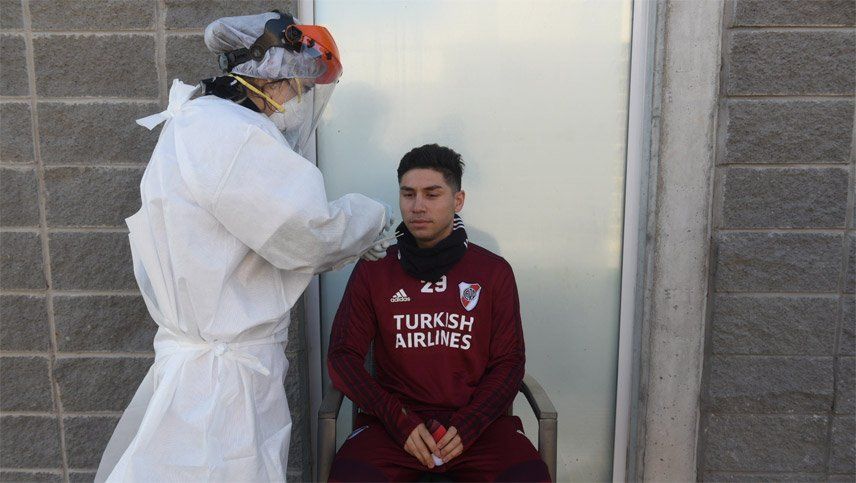 Montiel estuvo apenas 10 minutos en el predio River Camp que el club tiene en Ezeiza. Durante horas de la noche se sabrá el resultado del hisopado por coronavirus para saber con exactitud lo sucedido con el defensor.