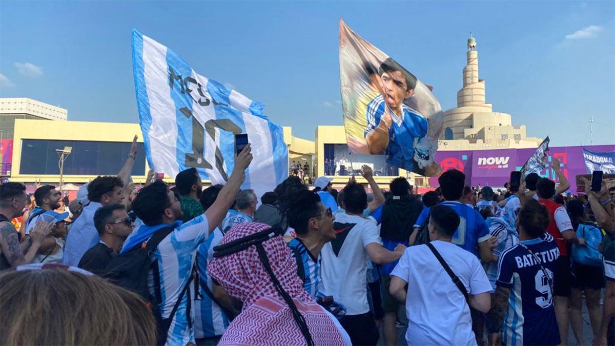 A 24 horas del comienzo de la ilusión albiceleste, los fanáticos argentinos se reunieron este lunes e hicieron un banderazo en la zona de El Corniche, un popular paseo marítimo de la ciudad de Doha, para expresar su apoyo al seleccionado de la Argentina a horas del debut del martes ante Arabia Saudita.