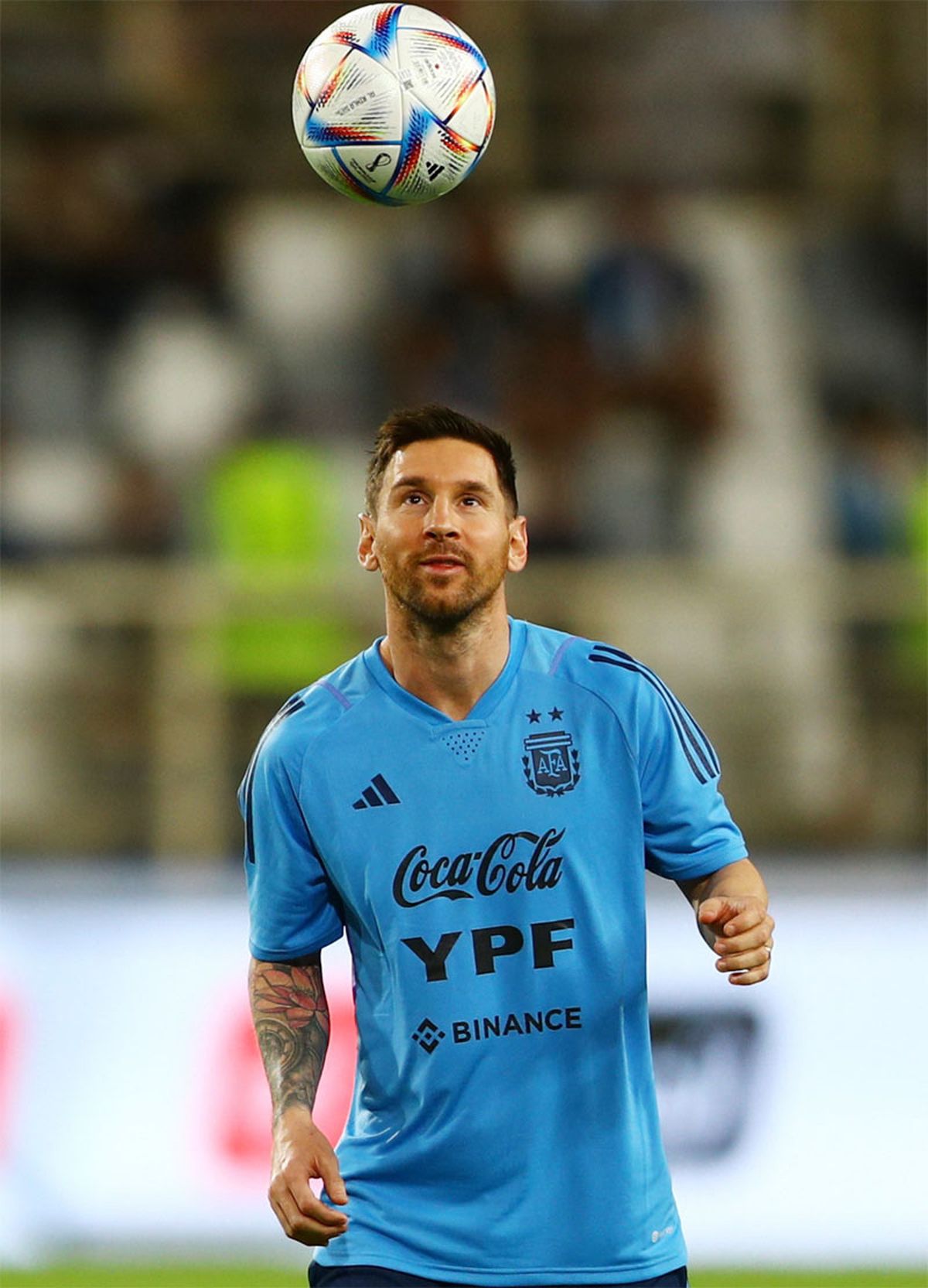Messi lideró el grupo de 14 futbolistas que realizaron una práctica liviana y abierta a un fervoroso público en el estadio Al Nahyan.