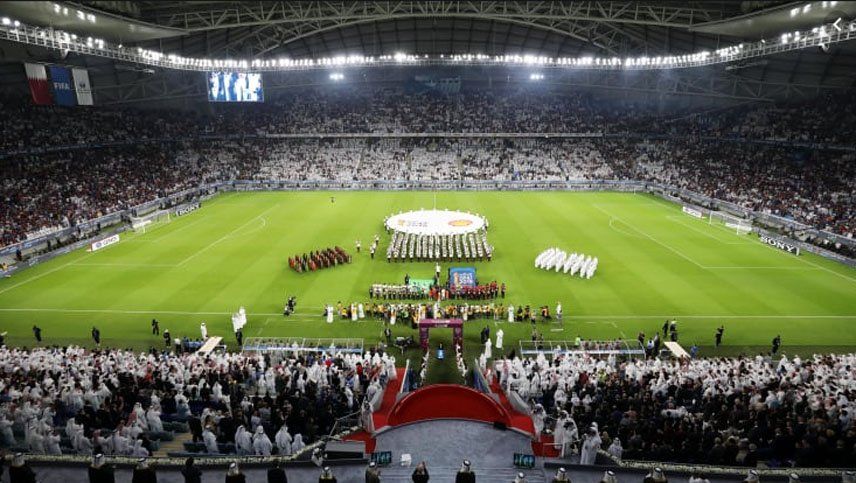 Además de hacer eco de la forma del trofeo de la Copa Mundial de la FIFA, la forma central del emblema se inspira en un chal de lana tradicional. Durante los meses de invierno, los chales se usan en todo el mundo y en la región árabe y del Golfo en particular.