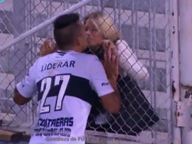 Gimnasia derrotó a Vélez, y Rodrigo Contreras quedó como un crack con su pareja. El goleador del Lobo platense se acercó al alambrado y le dio un tierno "pico" a su mujer, y luego le obsequió la camiseta.El amor en el fútbol, cada vez más de moda.
