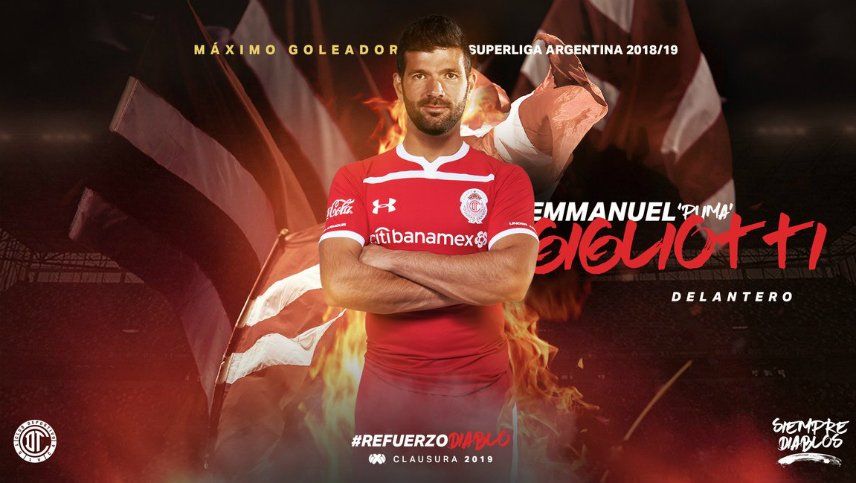 "El ex delantero del Club Independiente Emmanuel "El Puma" Gigliotti es el nuevo refuerzo de nuestros Diablos para encarar el torneo de Clausura. El atacante argentino llega a nuestro infierno consolidándose como el mejor anotador de la Super Liga Argentina en la temporada 2018-2019, con 12 anotaciones", indicó el Toluca. Además, agregó: "En su trayectoria futbolística a participado con Clubes de gran tradición en Argentina, como San Lorenzo de Almagro y Boca Jrs, así como un paso en el futbol Europeo en la Liga Italiana con el Novara".