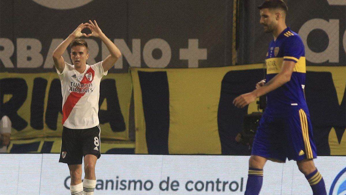 El mediocampista de River Plate Agustín Palavecino quedó "muy contento" de hacer su primer gol en el club y en un superclásico ante Boca Juniors en La Bombonera.