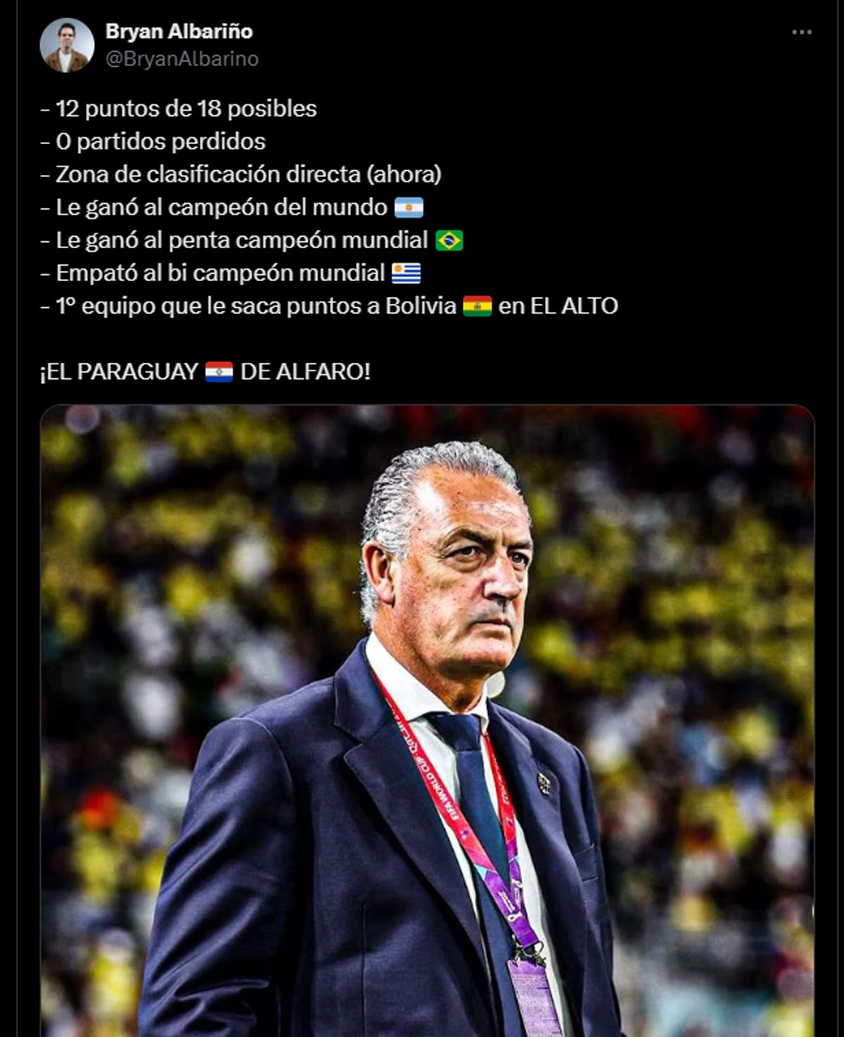 Los paraguayos, dirigidos por Gustavo Alfaro, suman 17 puntos con lo que igualan a Brasil que está 4to. y superan a Ecuador (16) aunque estos dos equipos aún deben jugar este martes ante Uruguay y Colombia, respectivamente.