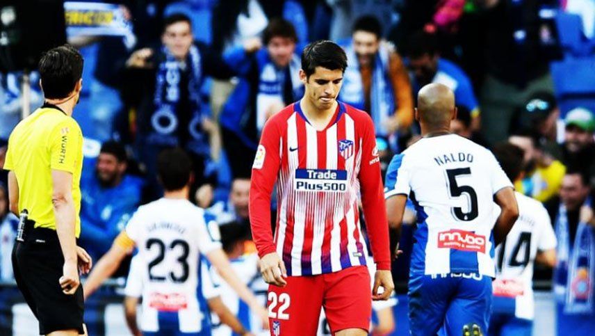 Atlético de Madrid, dirigido por Diego Simeone y segundo en la liga española de primera división, fue goleado por Espanyol, por 3 a 0, de visitante, en uno de los partidos que continuaron la 36ta. y antepenúltima fecha.