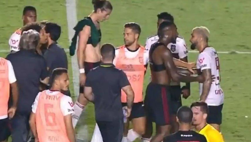 Gabigol y Willian Arão, dos de las figuras que tiene el Flamengo de Brasil (el rival de River Plate en la final de la Copa Libertadores) se pelearon sobre el final un partido del Brasileirao.