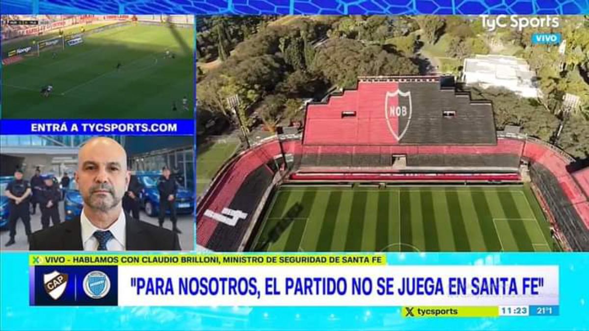 Entrevistado este martes por el canal de cable TyC Sports, el ministro de Seguridad de Santa Fe, Claudio Brilloni, confesó que para ellos "el partido no se juega en Santa Fe".