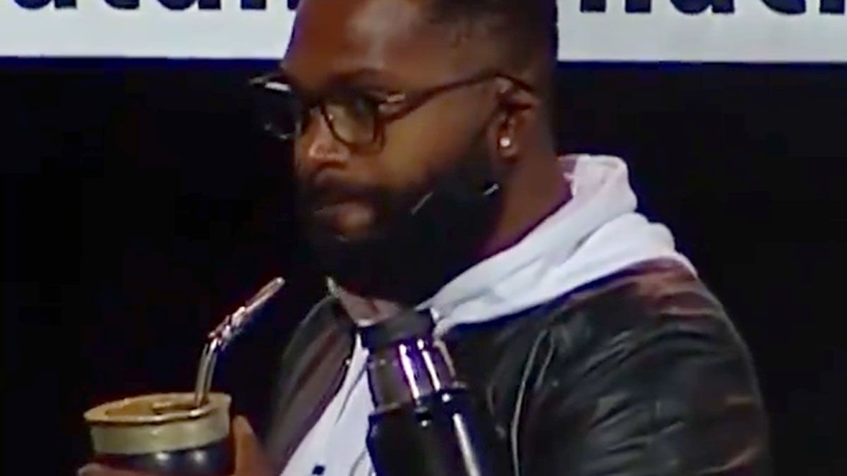 Al goleador del Tomba se lo vio, con mate en mano, muy distendido presenciando las acciones del partido, correspondiente a la tercera fecha de la Liga Profesional de Fútbol.