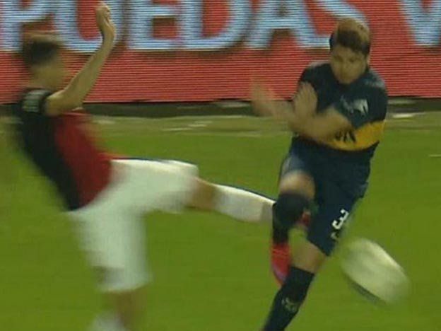 El defensor colombiano atendió a Palacios en el cierre de la primera etapa, pero para el árbitro sólo fue amarilla. Mirá el video.
