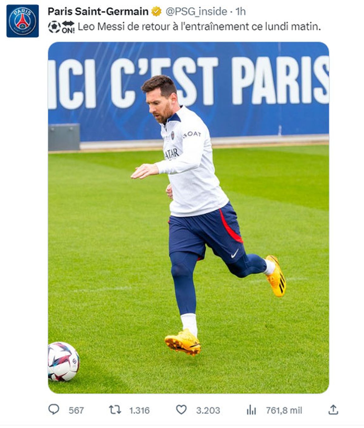 Los canales oficiales del club en las redes sociales mostraron al capitán de la Selección argentina en acción en el Camp des Loges.